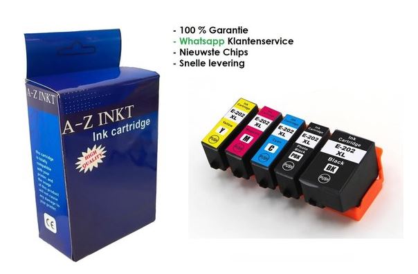 Deze Huismerk multipack voor de Epson 202xl van 5 inktcartridges. BK met 24ml en kleuren + foto zwart 15ml inhoud.